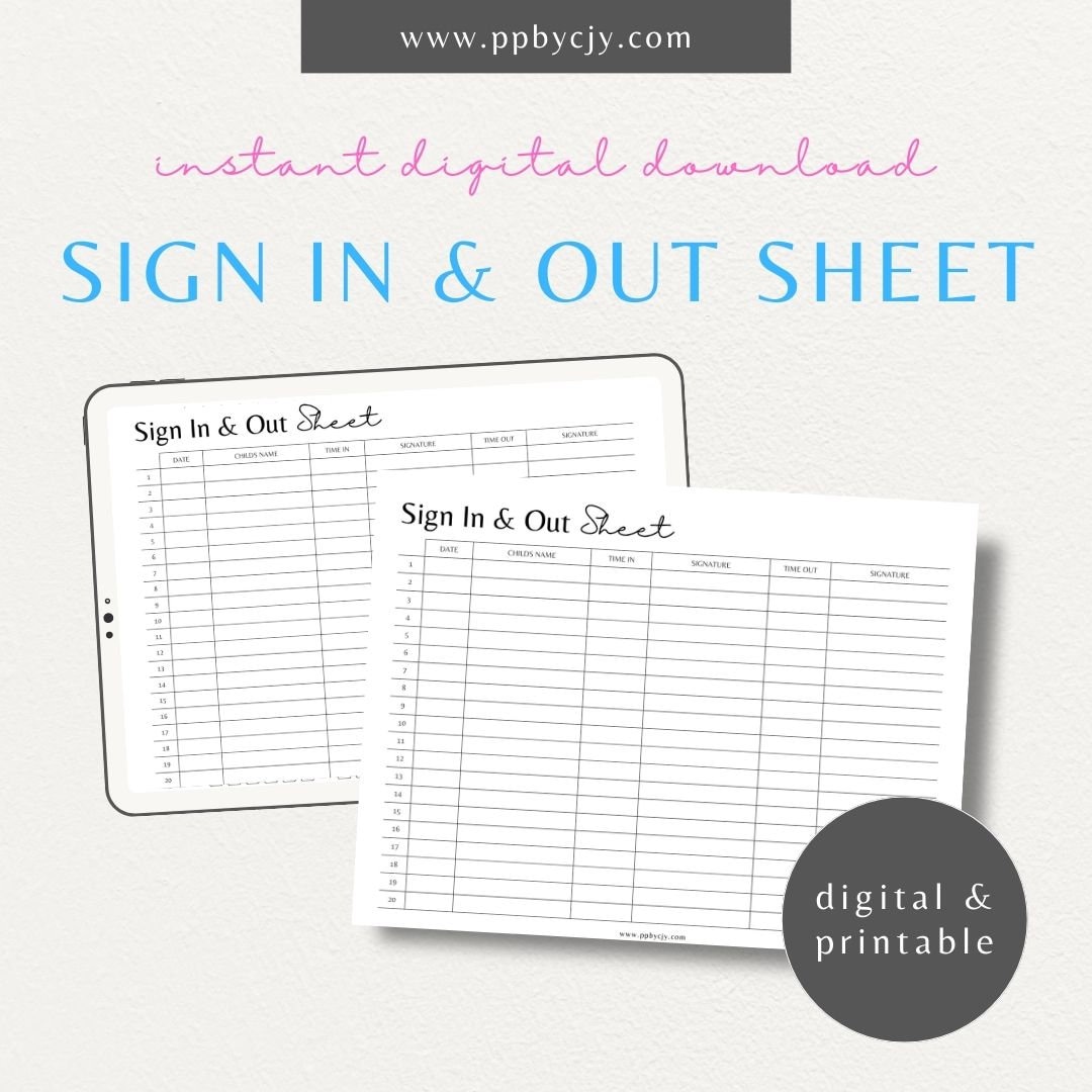 Printable Daycare Sign In/out Sheet and Early Pickup Sheet in Etsy