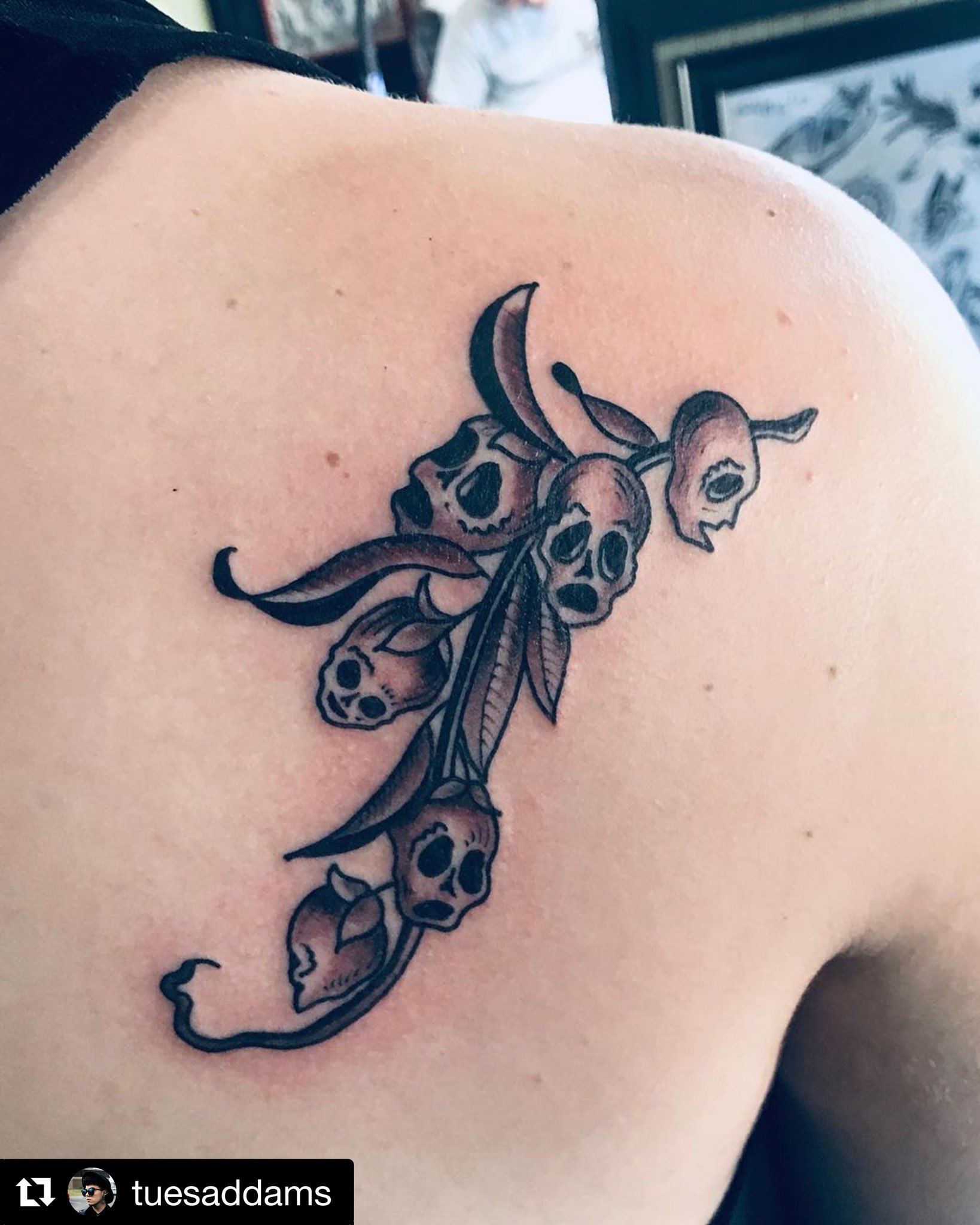 Dead snapdragons by Britt at Quill & Dagger tattoos in Collingwood, ON