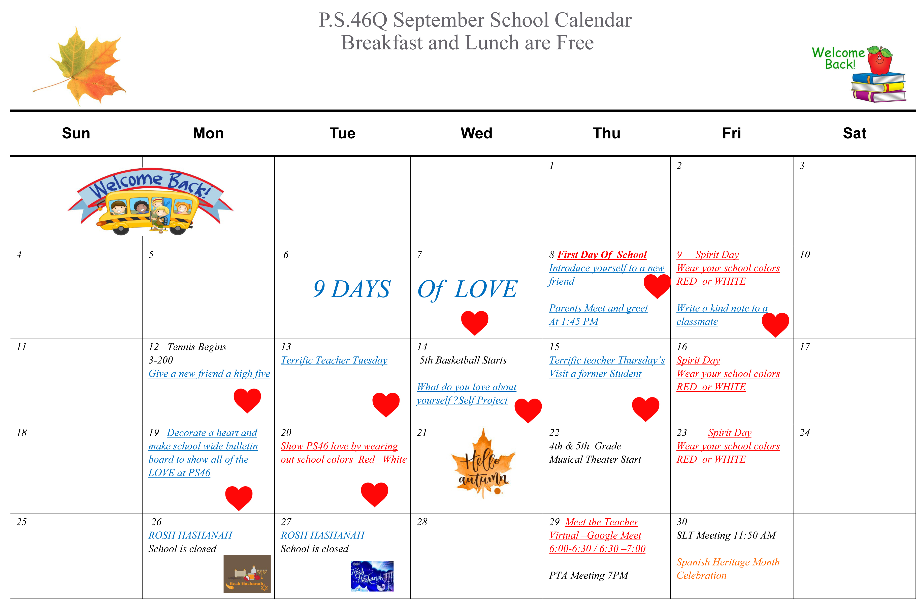 Stamo Karalazarides on Twitter "PS 46Q School Calendar for the month