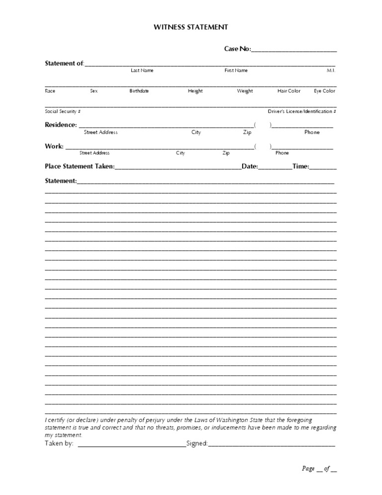 50 Professional Witness Statement Forms & Templates ᐅ TemplateLab