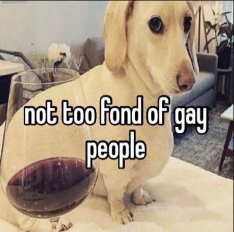Web in march 2021, an instagram user added the text not too fond of gay people to a 2019 photo of whitney beside a glass of red. Browse the best of our 'homophobic dog / not too fond of gay people' image gallery and vote for your. Go to the whisper site linked above, scroll down to typography, and download.