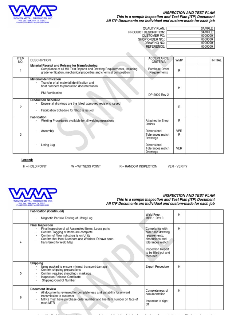 Sample ITP Engineering Production And Manufacturing