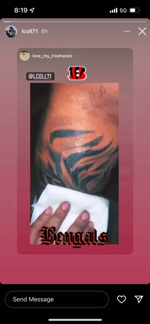 La'El Collins shows his loyalty and love for Cinci by getting a Bengals