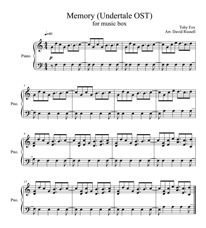 Memory Sheet Music Undertale - 4 followers • 116 scores. Modified over 6 years ago.