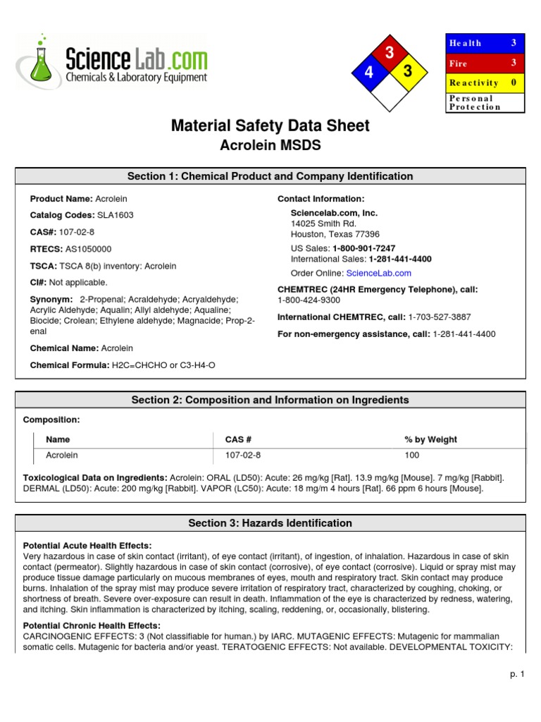 Acrolein MSDS Section 1 Chemical Product and Company Identification