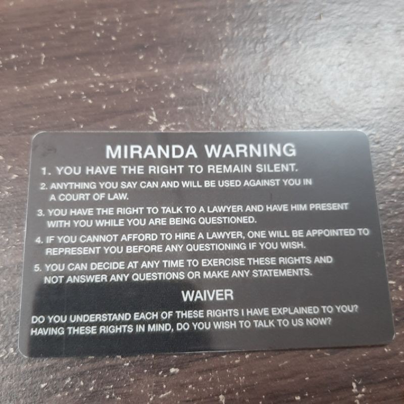 Miranda Warning Card Miranda Rights Police Officer Card Etsy