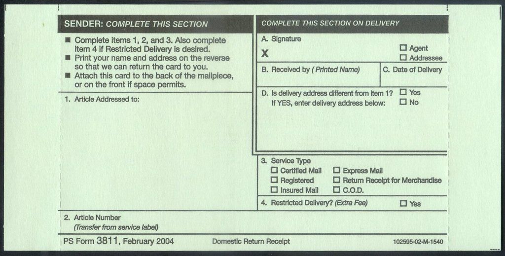 Accepted as legal proof of mailing, it should bear a usps postmark. May be purchased at the time of mailing only. $0.00 domestic return receipt form. The sender attaches the green card to the mail piece before it enters the mail stream. Press done after you finish the blank.