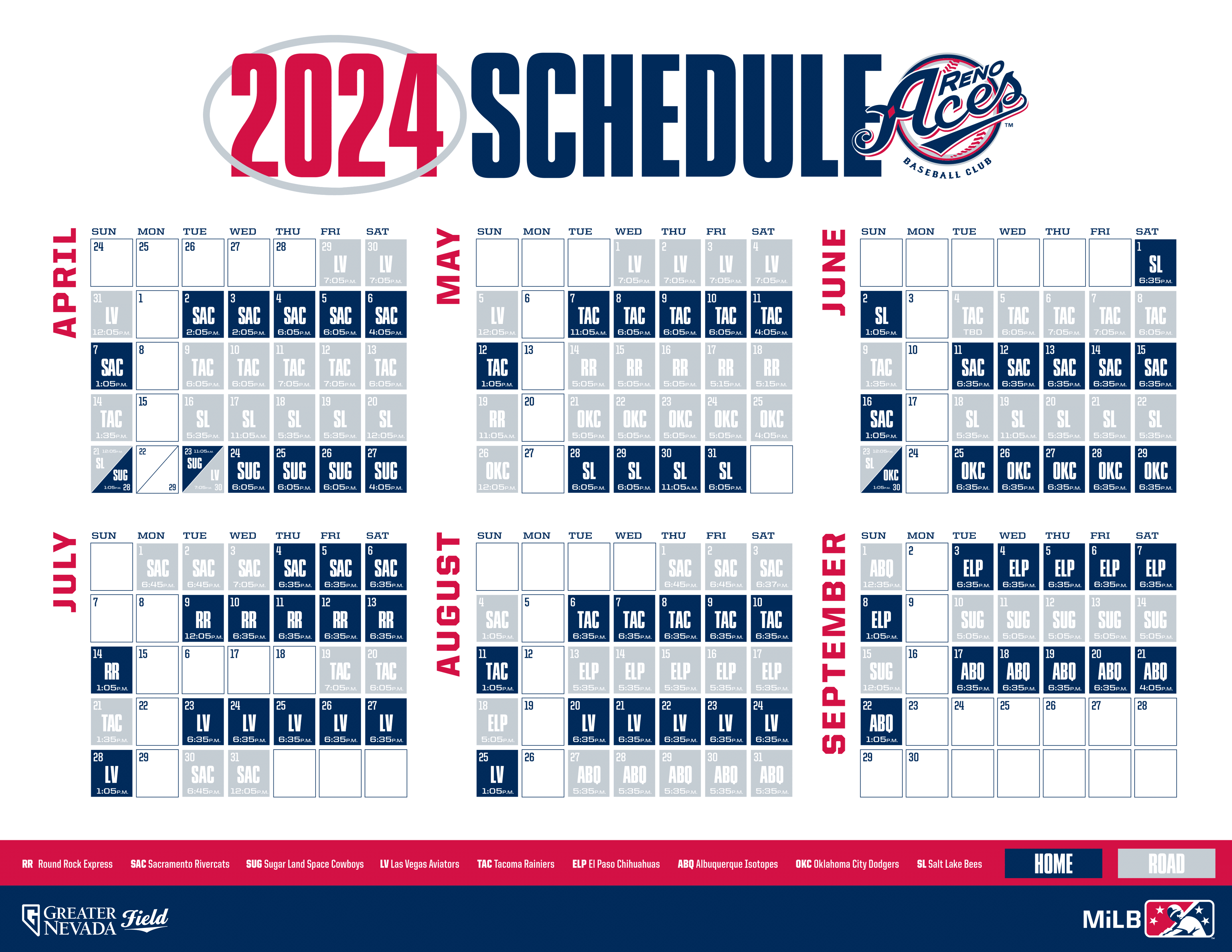 Web mar 29, 10:05 pm. Web tickets for the entire reno aces 2024 home schedule are on sale now for via renoaces.com, the greater nevada field ticket office, or by texting tixx to. Web 2024 schedule as of february 8, 2024 all times mountain. Web september 15, 2024 | 00:00:34. Single game tickets for the reno aces' 2024.