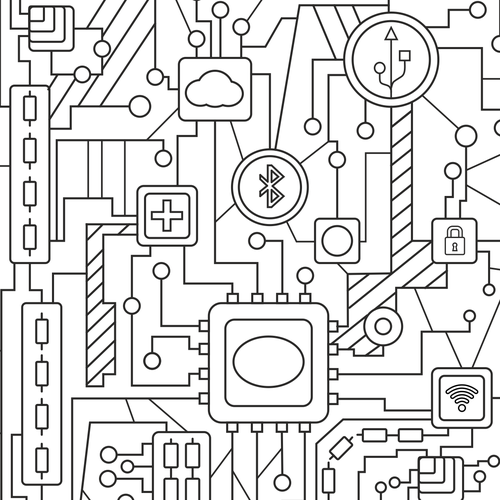 TechnologyThemed Adult Coloring Book Page Illustration or graphics