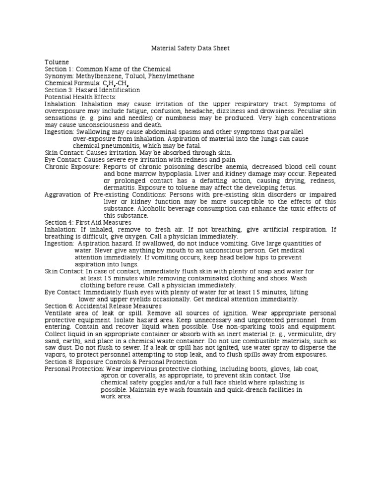 Msds Toluene Toluene Respiratory System Free 30day Trial Scribd