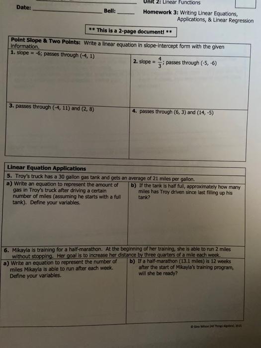 We have to undo a times by 2 with a divide by 2 to both sides. We can write linear equations in different forms to reveal different features of the scenarios they. Web showing 8 worksheets for unit 2 linear function homework 2 standard slope intercept. Unit 4 systems of equations. The rate of change between any two points on.