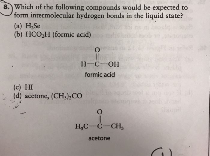 A) h2se b) hf c) hci d) hbr buy chemistry in focus 7th edition isbn: E) all of these can form intermoleculat hydrogen bonds Web which of the following compounds can form intermolecular hydrogen bonds? Web which of the following compounds will form intermolecular hydrogen bonds in the liquid state? Which of the following compounds.