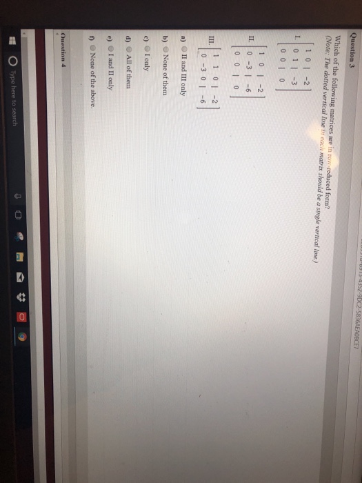 Which Of The Following Matrices Are In Row Reduced Form - Web the final matrix is in reduced row echelon form. The leading entry in each nonzero. Web give one reason why one might not be interested in putting a matrix into reduced row echelon form. The dotted vertical line in each matrix should be a single vertical line.) i. Web a matrix is in reduced row echelon form (also called row canonical form) if it satisfies the following conditions: If m is a sufficiently non ‐ degenerate. Consider a linear system where is a matrix of coefficients, is an vector of unknowns, and is a vector of constants. This problem has been solved!. Web learn which row reduced matrices come from inconsistent linear systems. B) i and ii only.