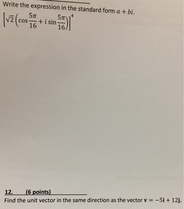 Write this expression in the standard form a + bi. Web how do you write the expression (1 − i)5 in the standard form a + bi? Write the expression in the standard form a +bi. Write the expression in the standard form a +bi. [3 ( cos 105° + i sin 105°) [3 ( cos 105° + i sin.