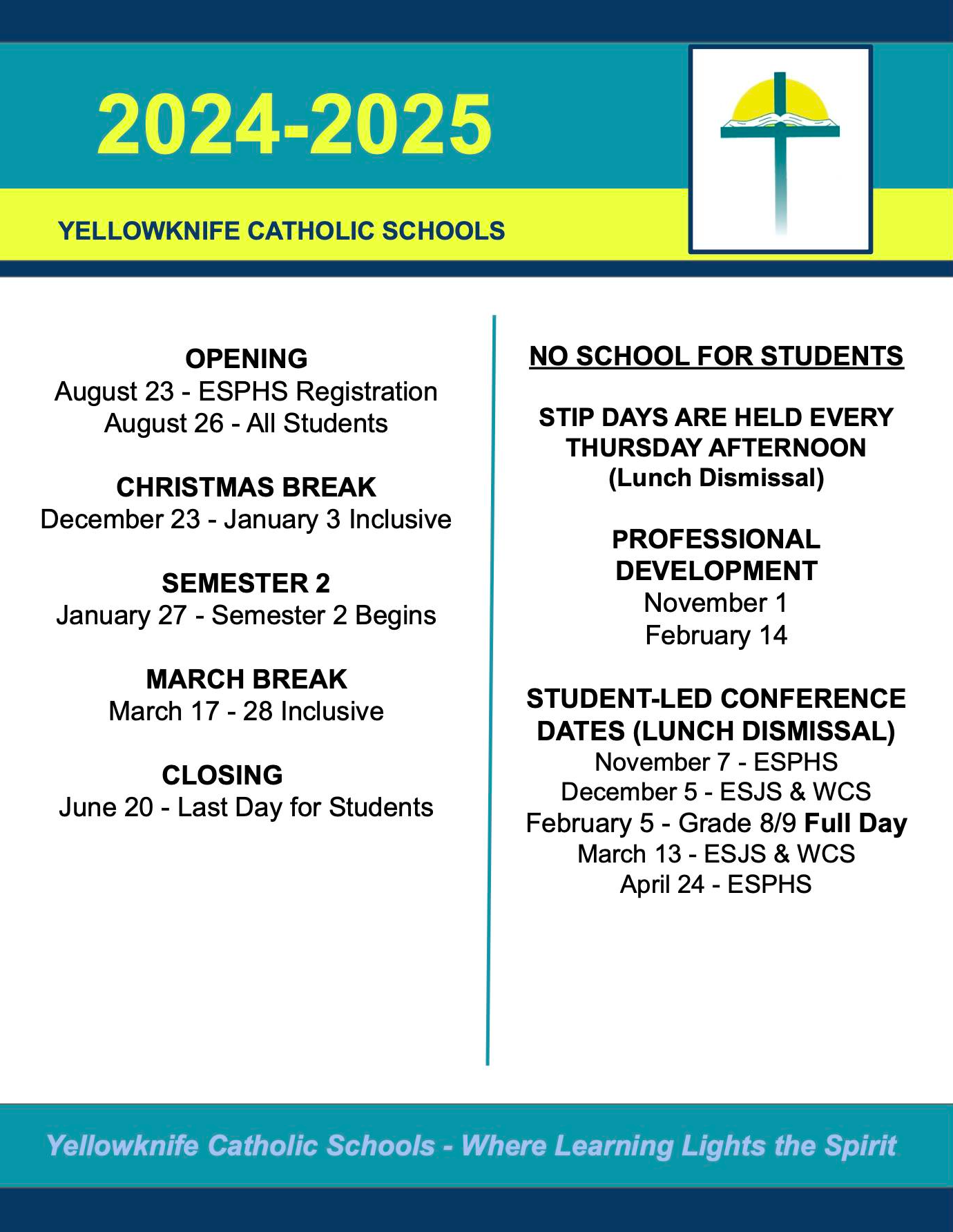 YCS Family Calendar 2024/2025 École St. Joseph School